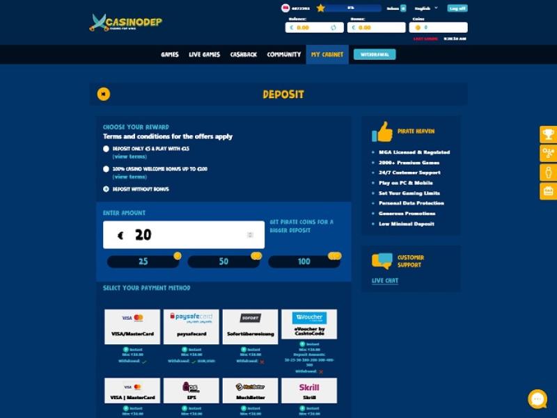 當談到其網站上用戶資料的安全性時,CasinoDep 確保實施最新的 SSL 加密技術,這必定會讓用戶在瀏覽網站時感到安全。