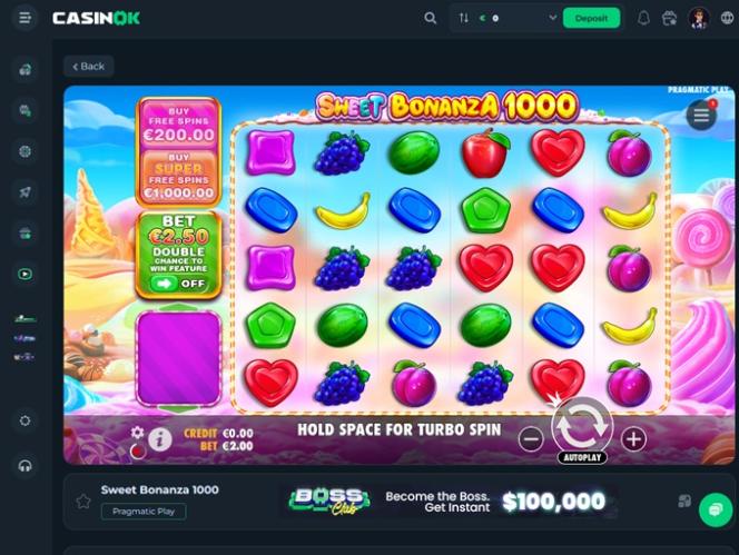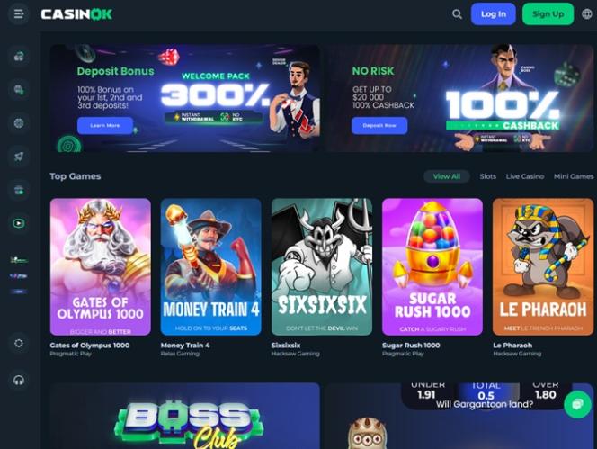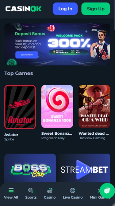 對於那些想嘗試一些簡單又有趣的遊戲的人來說,CasinOK 同樣令人印象深刻的即時碰撞遊戲陣容不容錯過。我們推薦JetX、Dice、HiLo、Dino、Plinko、Wheel、Icefield、Aviator、Teleport、Frog、Aero 和 Big Bass Crash。