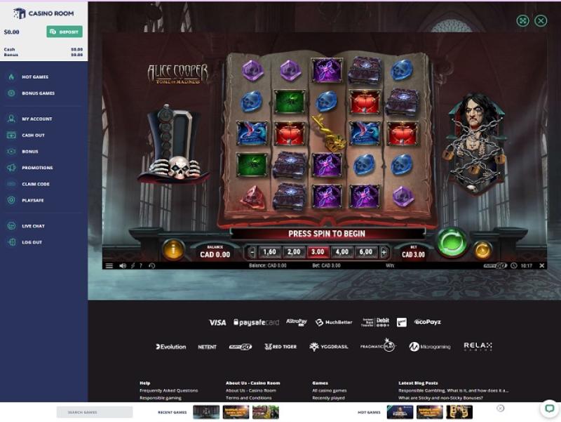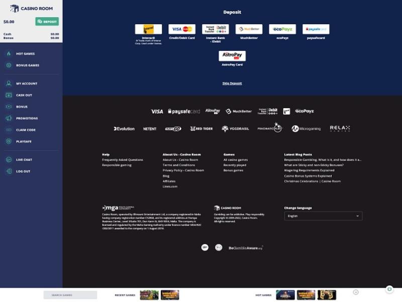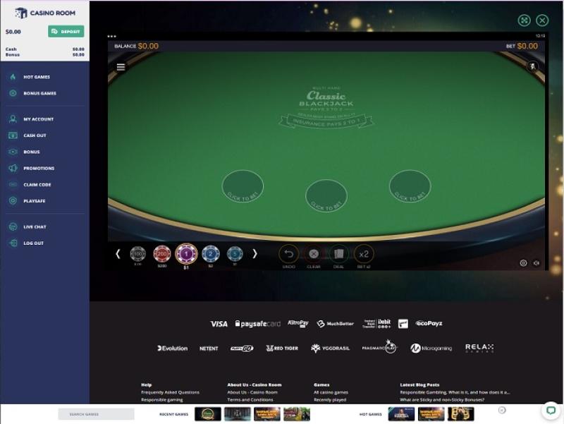 Casino Room 由 Microgaming, Net Entertainment, BetSoft, Barcrest, Big Time Gaming, ELK Studios, Evolution Gaming, Genesis Gaming, Play'n GO, Quickspin, Rabcat, Relax Gaming, Thunderkick, Yggdrasil, Wazdan, Booming Games, Pragmatic Play, Red Tiger Gaming, Skillzzgaming, Fantasma Games, SYNOT Games, Kalamba, Skywind, Triple Edge Studios, Northern Lights Gaming, Stormcraft Studios, Bulletproof Games, All41 Studios, Gluck Games, Gameburger Studios, Pulse 8 Studios, Neon Valley Studios, Golden Rock Studios, Swintt, TrueLab Games, SpinPlay Games, GONG Gaming, Games Global, 2by2 Gaming, Aristocrat, NextGen, NYX Interactive, Tom Horn Gaming, Inspired Gaming, SG Interactive, Authentic Gaming, Iron Dog Studio, Foxium, Just For The Win, Reflex Gaming, PearFiction Studios, Slingshot Studios, Fortune Factory Studios, 4ThePlayer, AvatarUX, Crazy Tooth Studio, ReelPlay, BB Games, Snowborn Games, Boomerang Studios, Hacksaw Gaming, Bang Bang Games, Half Pixel Studios, Peter And Sons and Eurostar Studios提供支持,為賭場提供數百種可透過賭場的基於網路的平台存取的遊戲。Baccarat