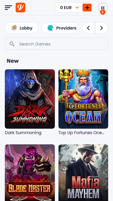 在主頁上,您可以看到所有最受歡迎的遊戲、新增的遊戲以及您可能感興趣的軟體產品。您還可以輕鬆存取服務條款、常見問題頁面或任何其他可能包含賭場有用資訊的部分。