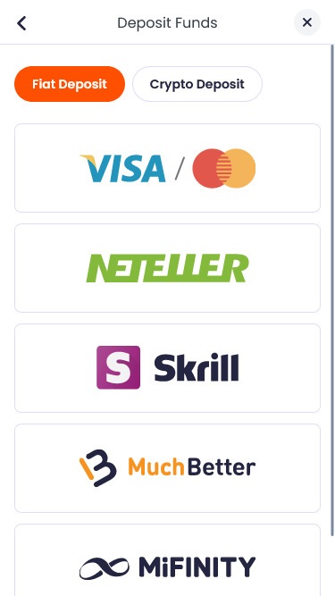 平台便捷易用的部分原因在於其提供豐富的銀行選項。玩家可以選擇使用傳統的支付方式,例如銀行電匯、 Visa 、 Mastercard 、 Neteller 、 Skrill等。