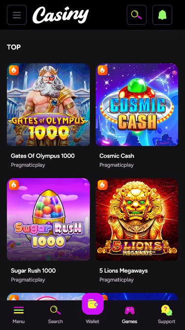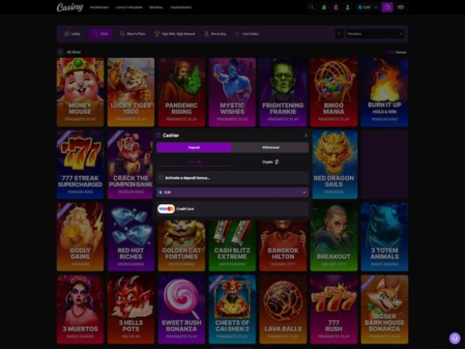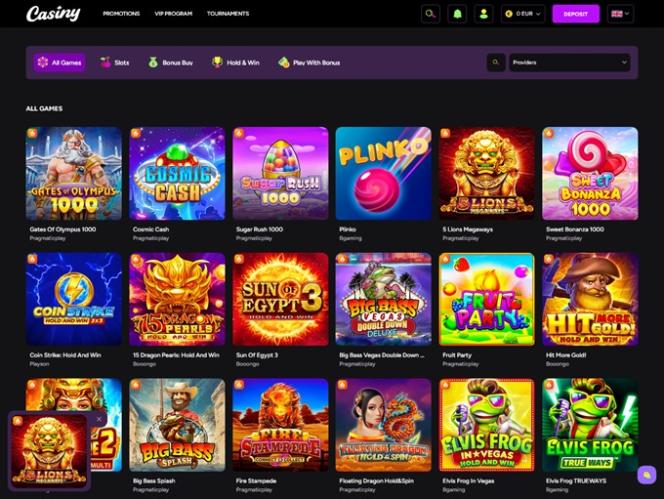 Casiny 不會浪費時間讓玩家了解他們所能探索的遊戲選項之多。該品牌的遊戲庫包含超過 5000 款獨特的遊戲,這使得它成為一個龐大的目錄,幾乎可以滿足所有玩家的喜好和品味。您還可以期待定期看到新遊戲加入我們的選擇。