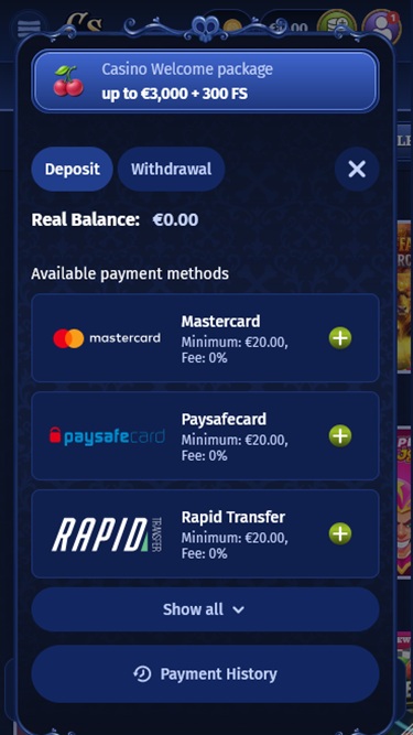 關於銀行政策,提款限額會根據客戶的VIP等級而有所不同。對於較低等級的會員,限額遠低於行業平均。玩家帳戶中任何時間最多只能有三筆待處理的提款。