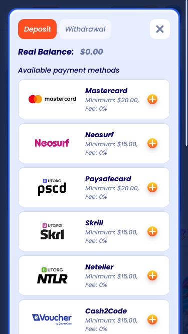 請記住,所有提供的選項均取決於所在國家/地區,建議您訪問“付款”選項卡,查看您首選的選項是否在您的管轄範圍內可用於在線博彩。此頁面還將提供每種選項的最低存款限額和最高提款限額資訊。