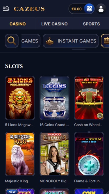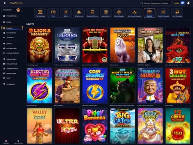 一定要試試 Cazeus 的獨家老虎機,尤其值得一試的是,它們提供演示模式,無需花費一分錢即可體驗。使用螢幕右上角的響應式搜尋欄,可以快速找到特定的遊戲或軟體供應商。如果您想快速瀏覽特定主題、節日等主題的遊戲,它也非常方便。