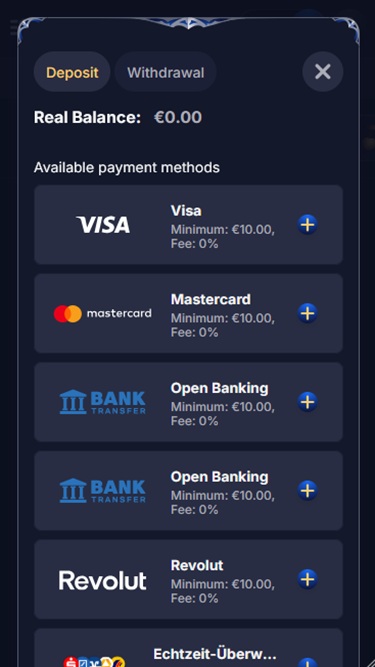 這家線上賭場營運商在全球各地提供服務,接受多種法定貨幣和加密貨幣。不同國家的支付方式可能有所不同,但有一點是肯定的:您一定能輕鬆找到合適的支付方式。以下是一些關於網站銀行業務的要點: