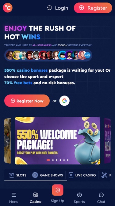 這個平台以獨特的方式迎接玩家,讓他們能夠快速了解這家賭場的獨特之處,以及它與競爭對手的不同之處。首先,我們想提一下,選擇藍色、紅色和橙色的配色方案,營造出每個人都會喜歡的愉悅氛圍。