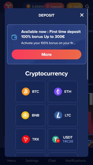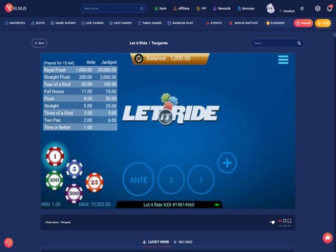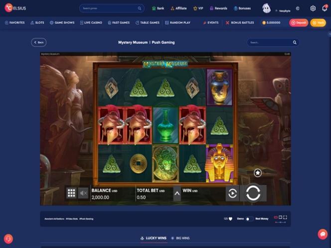 在主頁頂部,您可以存取一個水平選單,其中包含所有遊戲類別,例如老虎機、遊戲節目、真人荷官遊戲、桌面遊戲和即時遊戲。此選單包含有關VIP系統、獎勵和獎金的詳細頁面。