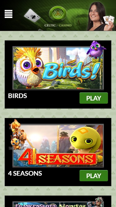Celtic Casino 由 BetSoft, Visionary iGaming and Distance Gaming提供支持,其遊戲透過基於網路的平台提供。