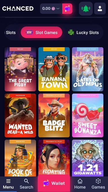 當然,您也可以使用貨幣暢玩所有精彩的遊戲。無論您喜歡刺激的線上老虎機、傳統的桌面遊戲、真人荷官體驗還是刮刮卡,Chanced Casino 都為您準備了豐富的選擇,因為 Chanced Casino 傾注了大量精力來擴展其遊戲庫。