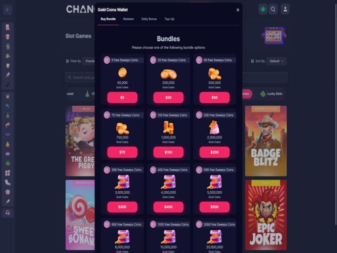 假設您在社交賭場中只專注於遊戲。那麼,Chanced 就是您的最佳選擇,因為該品牌擁有種類繁多的賭場遊戲,幾乎可以滿足所有人的口味和偏好。該網站還會定期更新遊戲庫,添加新遊戲,確保遊戲永遠不會過時。