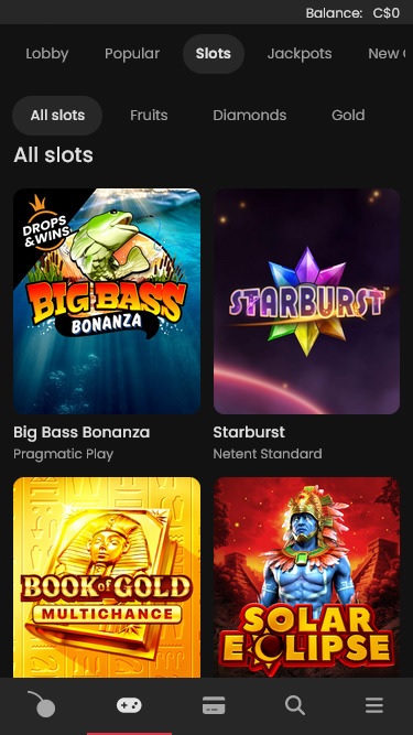 賭場大廳採用網格佈局,突出了令人興奮、獨特的遊戲,例如:Live - Spaceman、Cabin Crashers、Aviator、Limbo、Turn Your Fortune、Grand Wheel、Four Aces、MacLudo、Dices 等。