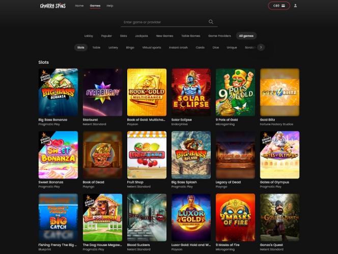 Cherry Spins 提供豐富的遊戲集合,這些遊戲由一些最受尊敬的線上賭場軟體公司提供,例如:Relax Gaming、NetEnt、BetSoft、Yggdrasil 以及許多其他設計高品質線上遊戲內容的工作室。
