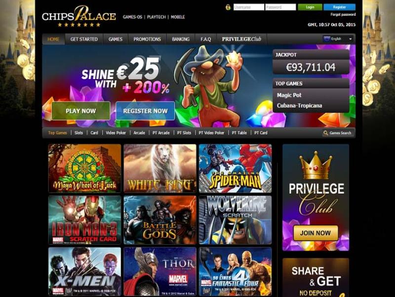ChipsPalace Casino 是一個線上博弈網站,由 Cyberneedle NV 於 2014 年創立。賭場擁有優雅的外觀和感覺,還擁有一個著名的遊戲庫,還為客戶提供累積獎金。賭場資訊