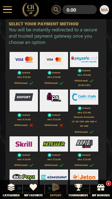 雖然您的原籍國將決定您可用的付款方式範圍,但我們相信,無論您屬於哪個賭博管轄區,都會有很多選擇,包括廣泛使用的銀行選項,例如支付卡、電子錢包和電匯。
