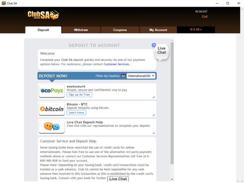 Club SA 由 Club World Casino (CWC) 集團擁有,該集團自 2004 年以來一直從事博彩業。該集團以豐厚的獎金獎勵忠誠玩家而聞名。該賭場面向南非市場,僅接受南非蘭特進行遊戲。事實上,從促銷優惠到即時遊戲軟體,它在各方面都與 Club World/Club USA 一模一樣。由於 Club World 在過去一年中被證明存在違規行為,該網站已被我們列入黑名單。這與管理階層變動有關,事實證明,這不僅對玩家不公平,對聯盟會員也不公平。因此,我們敦促玩家另尋他處。
