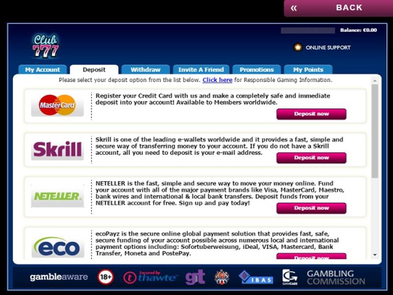 Club777 賭場由 Playtech提供支持,提供大量遊戲庫和易於使用的賭場平台。想要在 Club777 下注的玩家可以透過下載的軟體或與下載客戶端完全相同的網頁平台進行投注。此外,還提供行動賭場,方便玩家透過智慧型手機和平板電腦進行遊戲。Around the World