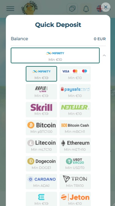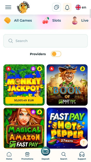 這家線上賭場由SoftSwiss提供支持,並提供海量遊戲庫。 Cobber Casino 跟上最新的 iGaming 潮流,提供包括加密貨幣在內的多種支付方式。現代玩家一定會喜歡這家賭場,尤其是來自加拿大、澳洲、紐西蘭、波蘭、奧地利、瑞士、挪威、德國、愛爾蘭或南非的玩家。