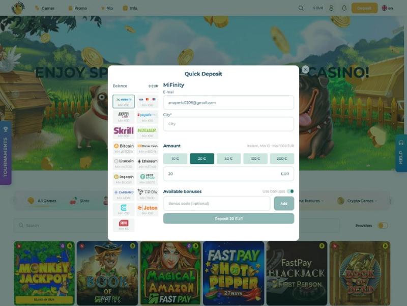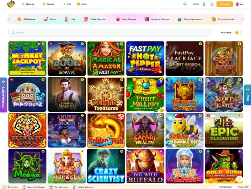 玩家可以在這裡嘗試各種類型的線上賭場遊戲,包括線上老虎機、擲骰子、百家樂、基諾、輪盤賭、二十一點、刮刮卡等。