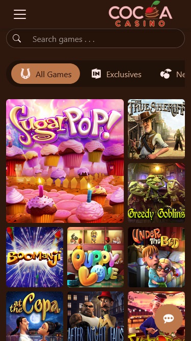 Cocoa Casino 由 BetSoft, Genesis Gaming, Rival, Saucify, Spinomenal, Radi8 Games, Fresh Deck Studios, Woohoo Games, Qora Games, Genii, Wager Gaming, Dragon Gaming and Dragoon Soft提供支持,擁有完整的遊戲庫,您可以透過可下載的軟體以及基於網路的平台來玩。Slot machines