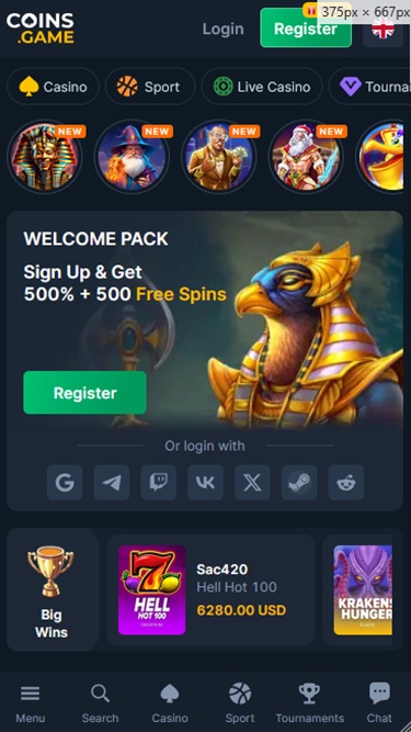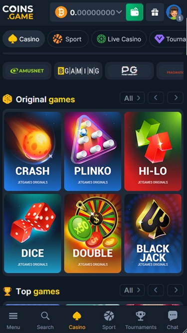 儘管最初是為行動裝置打造的,但這個賭場平台已針對所有裝置進行了最佳化,絕對不會讓桌上型賭場玩家失望。它緊跟最新潮流,並採用了最先進的技術解決方案。 Coins.Game 以其生動的設計吸引了我們的注意,引人入勝的全新功能和頂級獎金更是讓我們更加期待!不過,我們先來看看賭場提供的遊戲。