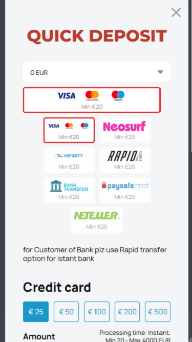 Combo Slots 的存款和提款可以透過多種銀行方式進行,包括金融卡和信用卡、流行的電子錢包和直接銀行轉帳。