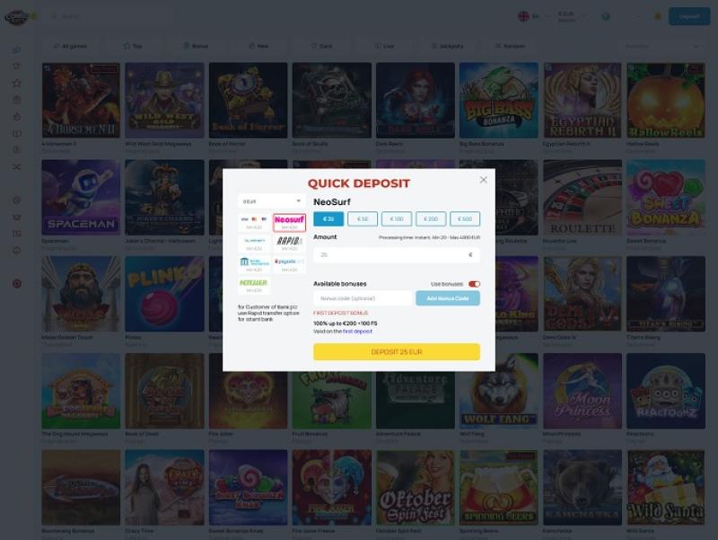 推薦的遊戲有:Barbarian Fury、Deadwood、Immortal Fruits、Bonus Bunnies、Harlequin Carnival、Chip Spin、Champions of Rome、Dark Vortex、Megaways Respin、Royal Dragon Infinity Reels、Boom Pirates、Extra Chilli Megaways、The Great Albions、Metaler Trains、Mell、Mr. 2、TnT Tumble、Sails of Fortune、Emerald Gold、Legion Hot 1、Royal Dragon Infinity Reels、Hades: River of Souls、Luck of Ra、Silverback: Multiplier Mountain、Spirit Of The Beast、The Golden Sail、Wild Chapo、Bang Bang、Chicago Nights、Wirit Of The Beast、The Golden Sail、Wild Chapo、Bang Bang、Chicago Nights、Wifid Wilds、Bookadd、nead、Chicago of seads、Ceads, New Teads、Ceadld York、Chicago of King、Teads eads、Chicago, Aead. or Alive 2 Feature Buy、Trolls' Gold…