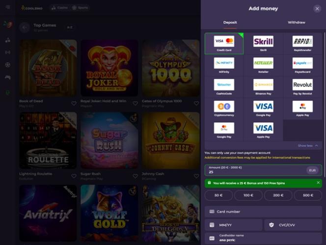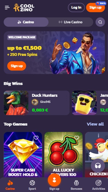 喜歡線上賭場提供豐富博彩活動的玩家一定會在 Coolzino 賭場度過一段美好的時光。該品牌提供線上老虎機、桌上遊戲、真人娛樂場遊戲和刮刮卡。這些遊戲種類繁多,我們相信即使是最經驗豐富的玩家也能輕鬆找到從未玩過的遊戲。