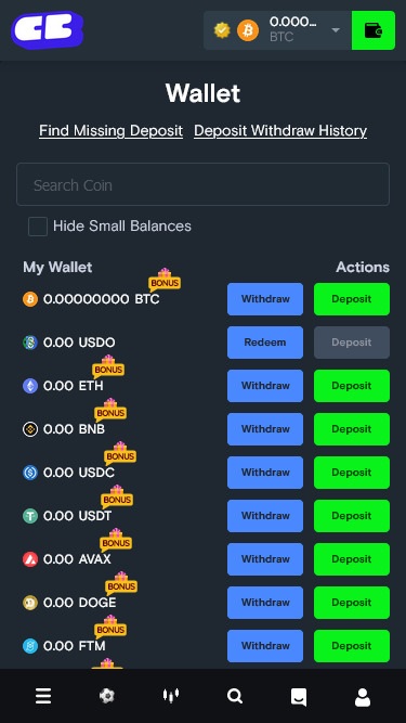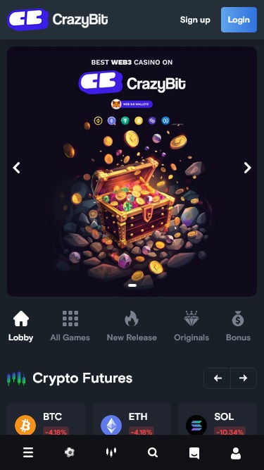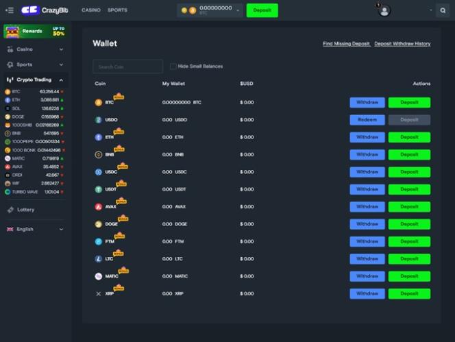 Crazybit.io 賭場是一個專注於加密貨幣的博彩平台,提供多種貨幣的存款和提款服務。比特幣、以太坊、 Solana 、狗狗幣、萊特幣、泰達幣、瑞波幣等均可快速且匿名地進行交易。遺憾的是,平台不提供任何傳統的銀行轉帳方式。