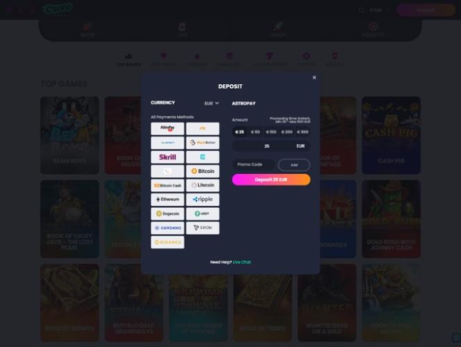 該賭場配備了由一些最知名的線上賭場軟體開發商製作的賭博內容。合作夥伴名單很長,實力雄厚,包括:iSoftBet、Evolution Gaming、NetEnt 以及許多其他知名遊戲工作室。