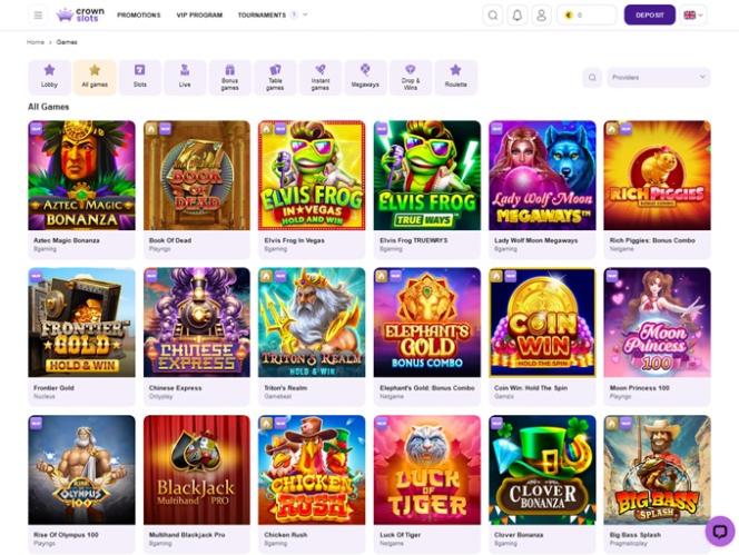 儘管我們對 CrownSlots Casino 的視覺設計和用戶體驗幾乎沒有什麼不好的評價,但我們仍然需要徹底檢查品牌提供的娛樂選項,因為這是任何現代線上賭場最重要的部分。