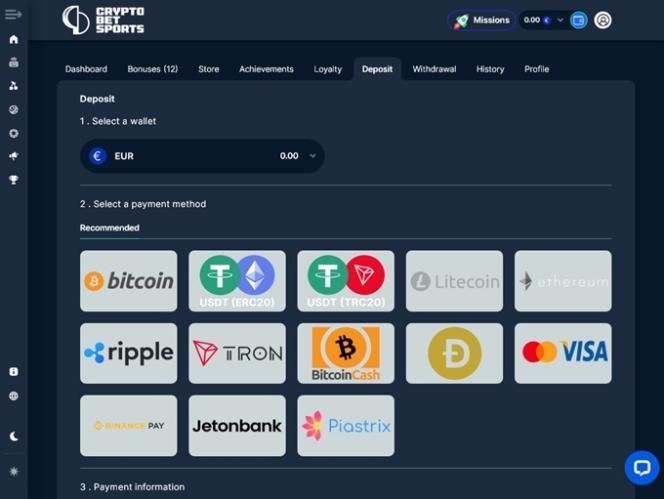 Banking銀⾏業務選項 的 Crypto Bet Sports Casino
