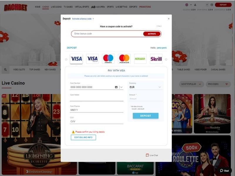 合乎邏輯——要玩遊戲,您需要存入資金;因此您需要可靠的存款方式,而 Dachbet 提供了多種存款方式。在可用的提款方式中,您還可以選擇自己喜歡的提款方式,包括加密貨幣。