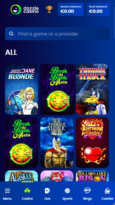 在這個線上賭場,玩家不僅有機會嘗試一些最受歡迎的遊戲,還能探索各種類型的新鮮、引人入勝的內容。以下只是 Dazzle Casino 提供內容的一小部分。