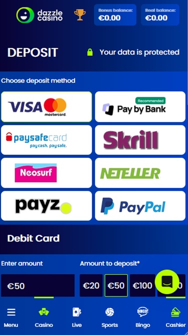 Dazzle Casino 致力於為玩家提供安全的線上支付,並保護所有在網站上交換的敏感資訊。它採用了最新的 SSL(安全通訊端層)加密協議,該協議幾乎是所有線上行業的安全標準。