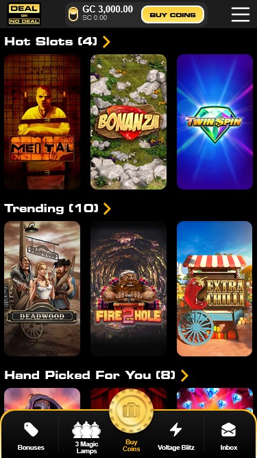 《Deal or No Deal Win》於2024年上線,是將傳奇遊戲節目《Deal or No Deal》的刺激體驗帶入社群遊戲領域的抽獎品牌。該網站匯集了豐富的賭場風格老虎機、即時崩潰遊戲和熱門真人遊戲節目。美國各地的玩家均可訪問該平台,但包括加利福尼亞州、康涅狄格州、特拉華州、愛達荷州、路易斯安那州、密西根州、蒙大拿州、內華達州、新澤西州、紐約州和華盛頓州在內的幾個州仍處於限制狀態。