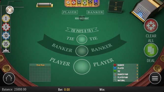 Baccarat使⽤六副與⼋副牌組在概率上會有些微的不同。以下列表顯⽰在兩種遊戲 中、針對所有三種押注的賭場優勢。