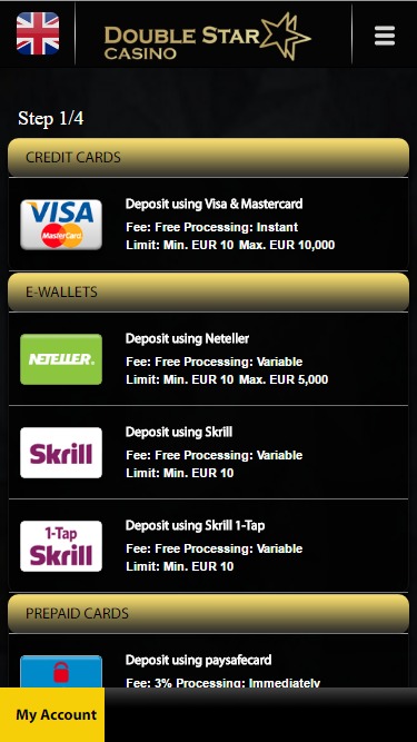 Double Star Casino 由 Microgaming, Net Entertainment, Games Global, NYX Interactive and iGaming2go提供支持,其賭場遊戲透過網頁平台提供,可直接透過網頁瀏覽器進行遊戲。該賭場還提供行動網站,可透過智慧型手機和平板電腦進行遊戲。Baccarat