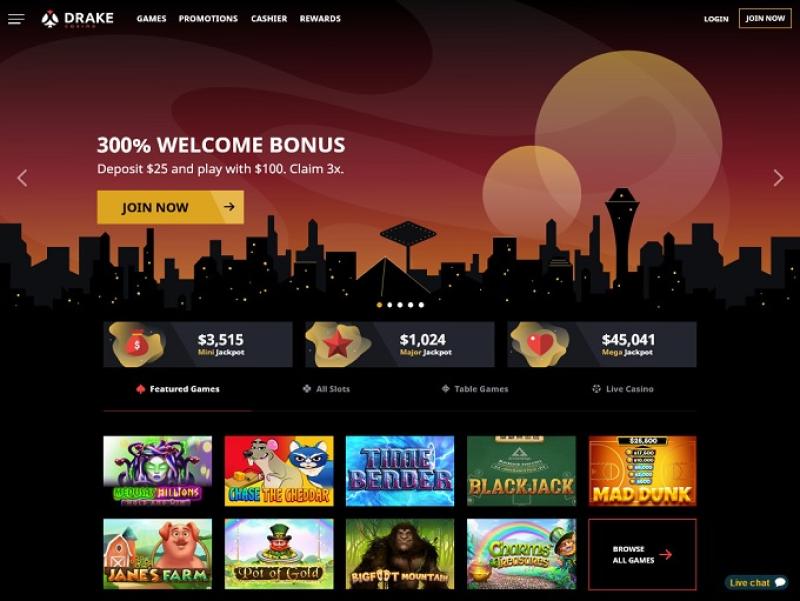 Drake Casino 是一個精心設計的線上遊戲網站,以精美的 3D 遊戲和豐厚的獎金吸引玩家。雖然我們曾多次被賭場華麗的首頁所欺騙,但我們發現 Drake Casino 的運作相當成熟,遊戲種類豐富多樣。
