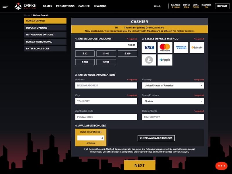 Drake Casino 由 BetSoft, Rival, Saucify, Arrows Edge, Inbet Games, Nucleus Gaming, Fresh Deck Studios, Genii, Proprietary and FlipLuck提供支持,為玩家提供玩大量 3D 老虎機、桌上遊戲和其他值得玩的遊戲的機會。