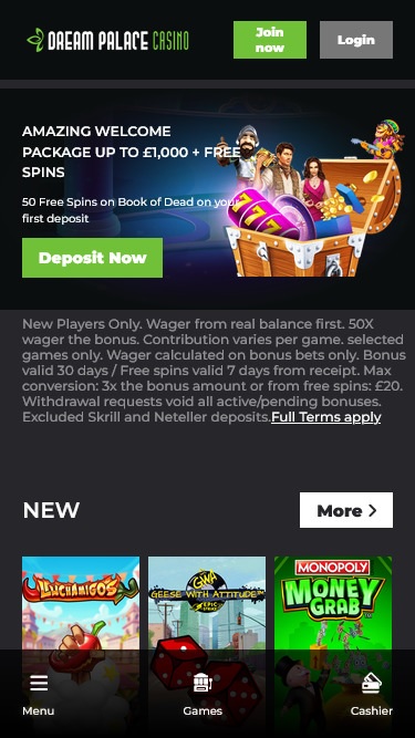 Dream Palace Casino 是一個線上博彩網站,成立於 2014 年,由 ProgressPlay Limited 擁有並經營。該賭場獲得了客戶的積極評價,他們對其龐大的遊戲庫和友好的賭場管理讚不絕口。該網站在馬耳他和英國均持有牌照,因此擁有在歐洲大陸大部分地區運營的權限。