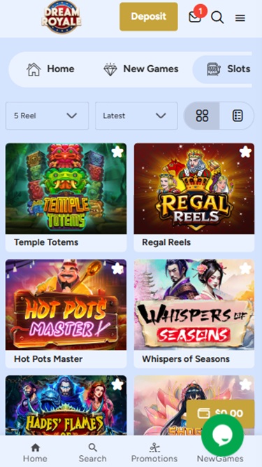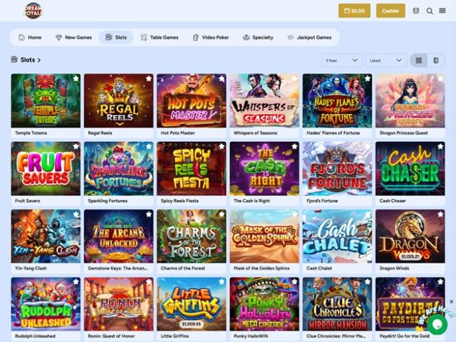 在 Dream Royal,瀏覽和發現新遊戲非常容易。玩家可以根據不同的參數進行搜索,無論是捲軸類型、特殊功能還是最新版本。