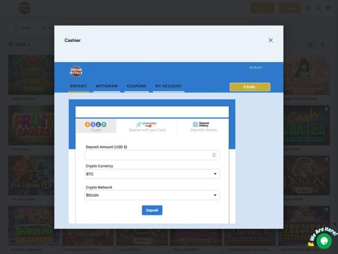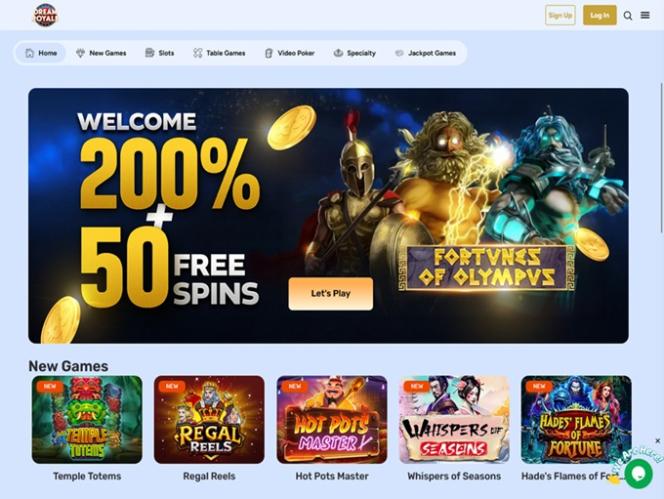 Dream Royale 的註冊分為三個步驟,過程簡單快捷,之後玩家可以訪問用戶友好的玩家儀表板以及誘人的服務和功能,包括歡迎賭場獎金、透過電子郵件和線上聊天提供的專業客戶支援服務、忠誠度獎勵和其他好處。