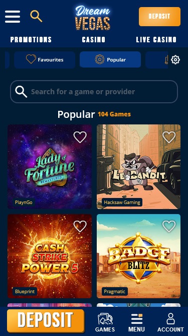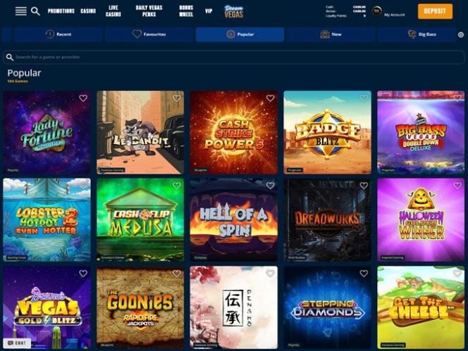 Dream Vegas 賭場由 Microgaming, Net Entertainment, 1x2gaming, Barcrest, Big Time Gaming, ELK Studios, Evolution Gaming, EYECON, Ezugi, lightningboxgames, Novomatic, Oryx, Play'n GO, Rabcat, Relax Gaming, Thunderkick, Wazdan, Realistic Games, Stakelogic, Pragmatic Play, Nolimit City, Felt Gaming, Red Tiger Gaming, IGT, Spinomenal, Red Rake Gaming, Fantasma Games, FunFair, SYNOT Games, Kalamba, Revolver Gaming, Skywind, Spinmatic, Triple Edge Studios, BGAMING, Northern Lights Gaming, Stormcraft Studios, Switch Studios, Electric Elephant Games, Pocket Games Soft, All41 Studios, Gluck Games, Gameburger Studios, Pulse 8 Studios, Slot Factory, Neon Valley Studios, Golden Rock Studios, Spearhead Studios, Swintt, Shuffle Master, SpinPlay Games, HungryBear Gaming, GONG Gaming, Blue Guru Games, Lady Luck Games, On Air Entertainment, Buck Stakes Entertainment, Design Works Gaming, Games Global, Ainsworth, Bally Technologies, Blueprint Gaming, Endemol Games, EveryMatrix, Greentube, Leander Games, Merkur Gaming, NextGen, NYX Interactive, Push Gaming, Tom Horn Gaming, WMS, Inspired Gaming, Gaming Realms, SG Interactive, Gamomat, Red7Mobile, CORE Gaming, Scientific Games, Side City Studios, Reel Time Gaming, Authentic Gaming, Bally Wulff, Iron Dog Studio, Old Skool Studios, Foxium, Betdigital, Just For The Win, Storm Gaming Technology, PearFiction Studios, Apollo Games, Wild Streak Gaming, Slingshot Studios, Fortune Factory Studios, Jade Rabbit Gaming, RubyPlay, 4ThePlayer, AvatarUX, Gamevy, Crazy Tooth Studio, NetGaming, ReelPlay, AGS Interactive, Alchemy Gaming, Black Pudding Games, Snowborn Games, Hacksaw Gaming, Max Win Gaming, Gold Coin Studios, Bang Bang Games, Half Pixel Studios, Slotmill, SilverBack Gaming, Peter And Sons, Eurostar Studios, Aurum Signature Studios, Armadillo Studios, Lucksome Gaming, Area Vegas, RAW iGaming, Leap Gaming, Wishbone Games, Spribe, Circular Arrow, Print Studios, Gaming Corps, HammerTime Games, Four Leaf Gaming, INO Games, Nailed It! Games, Neko Games, Reel Kingdom, Oros Gaming and Light & Wonder提供支持,賭場平台透過您的網路瀏覽器提供。您無需下載任何軟體即可暢玩,而且賭場還支援透過行動裝置進行遊戲,您可以使用智慧型手機或平板電腦進行博彩。