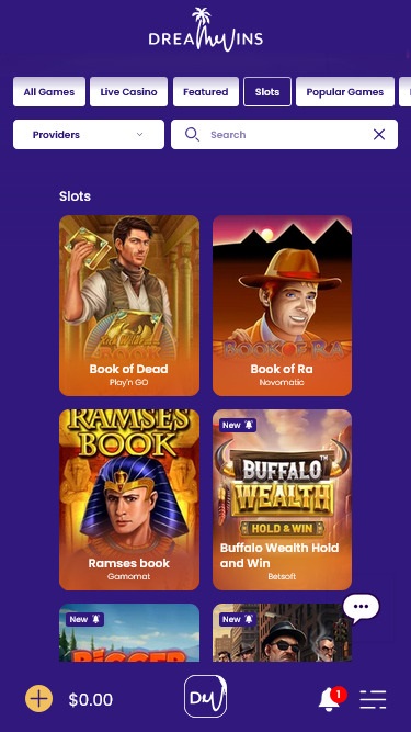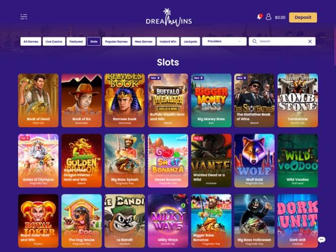 DreamWins 與眾多賭場軟體開發商合作,玩家可以探索由Pragmatic Play、Evolution Gaming、Relax Gaming等 iGaming 巨頭以及專注於為線上賭博世界帶來吸引人的創新的小型遊戲工作室製作的內容。