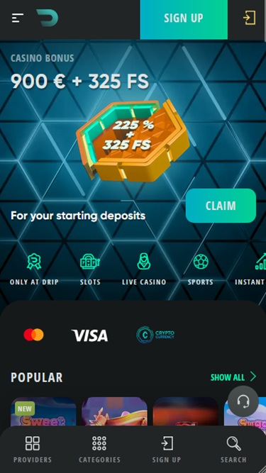 DRIP 賭場歡迎來自德國、加拿大、紐西蘭和奧地利的玩家加入他們的賭博平台,以便他們可以享受自己選擇的遊戲。