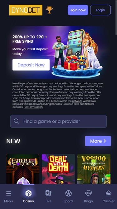 Dynobet 於 2025 年 2 月更名後,致力於透過提供豐富的遊戲、獎金和促銷活動來吸引大量賭場玩家。除了數千款線上老虎機、真人荷官、桌上遊戲、速成遊戲和體育博彩選項外,該品牌還致力於透過促銷計劃為玩家提供各種福利。