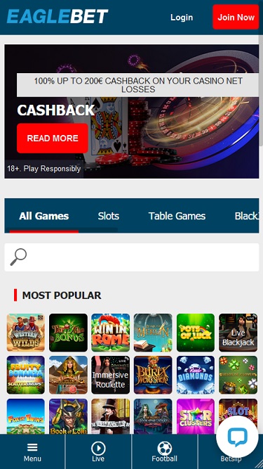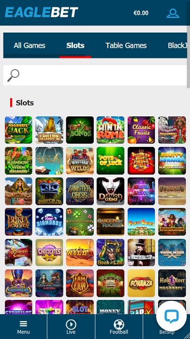 EagleBet Casino 由 Microgaming, Big Time Gaming, Evolution Gaming, Play'n GO, Quickspin, All41 Studios, Gameburger Studios, Games Global, Blueprint Gaming, Tom Horn Gaming, Just For The Win, Crazy Tooth Studio and Alchemy Gaming提供支持,網站遊戲透過網頁平台提供,可直接透過您的網頁瀏覽器存取。網站設計精美,易於瀏覽。由於全面支援行動遊戲,在智慧型手機上觀看效果尤其出色。