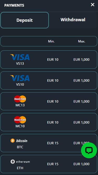 品牌的另一個特色是允許玩家使用傳統和現代銀行服務。希望使用信用卡和金融卡的玩家可以輕鬆使用。此外,玩家還可以使用各種加密貨幣來存取資金,從而實現更安全、更快捷的交易。