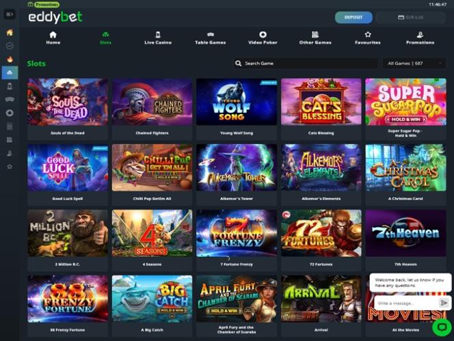 正在尋找提供豐富遊戲的線上賭場的玩家一定會喜歡EddyBet賭場的豐富遊戲庫。線上老虎機、真人荷官、桌上遊戲和賓果遊戲應有盡有,讓您享受充滿獨特遊戲的精彩博彩體驗。